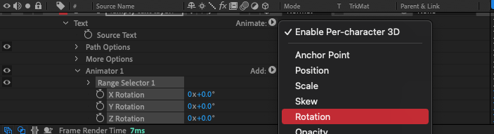 I started by adding some text and deciding what font I would use on After Effects. Then Enable Per-character 3D and then rotation which makes it easy for me to animate the text. Then decided how I wanted to rotate the text and using the keyframe I animated the text rotating. I do like this animation but I don't know if I will use it for my opening title.